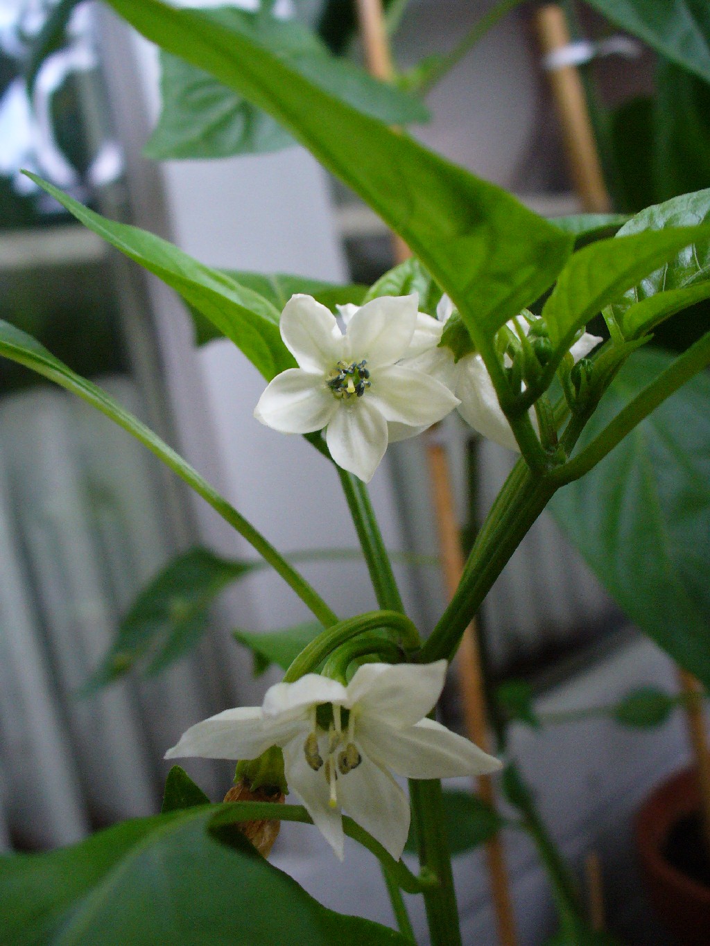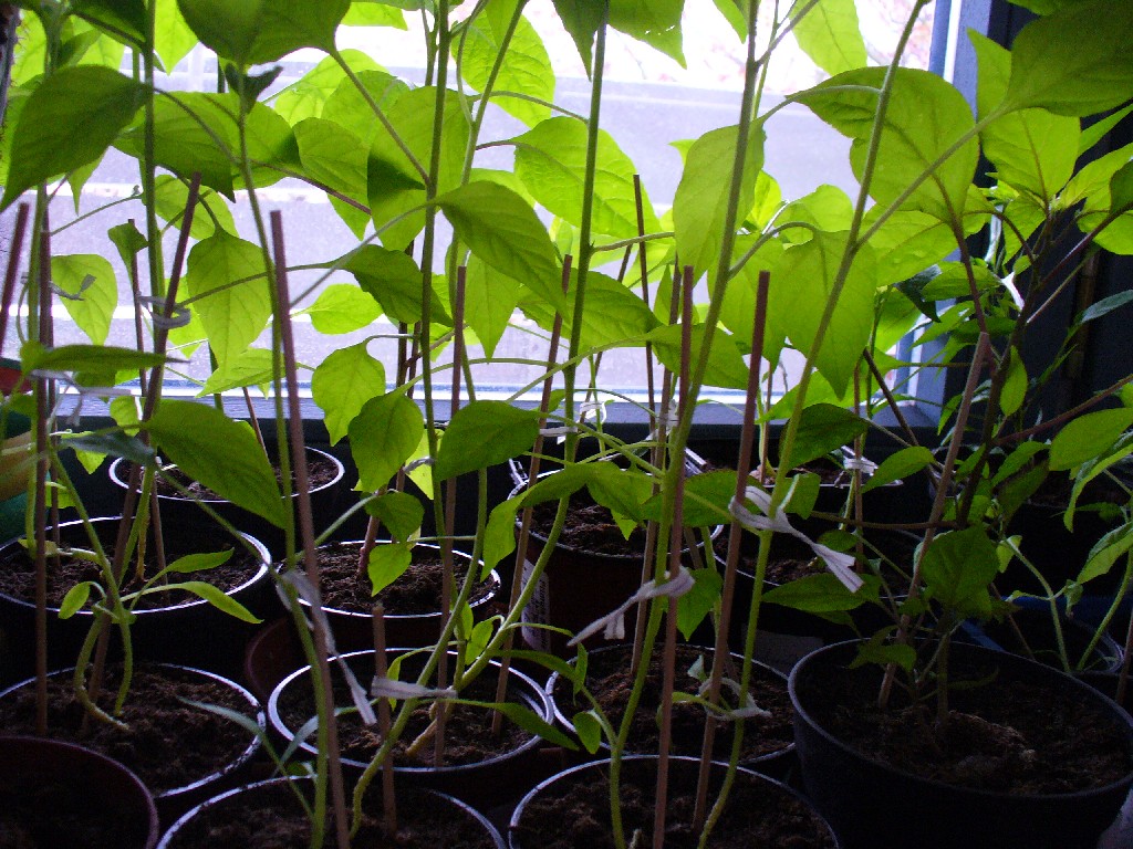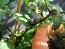 Dieses Jahr wachsen besonders gut die Krimzon Lee (3. Generation), die Cayenne sowie die Black Royal. Auch ganz gut haben sich die Jalapenos entwickelt, obwohl wir damit erst im März begonnen haben. Auf dem Balkon haben sich bereits die ersten Schädlinge (Blattläuse) angesiedelt. Noch werden die mit der Hand abgezupft o. zerquetscht. Im nächsten Schritt werden wir aus dem Garten mal ein paar Marienkäfer sesshaft machen und danach, wenn das auch nichts hilft, mit den üblichen leichten Mittelchen (s. auch Rubrik Wissenswertes - Schädlinge -).