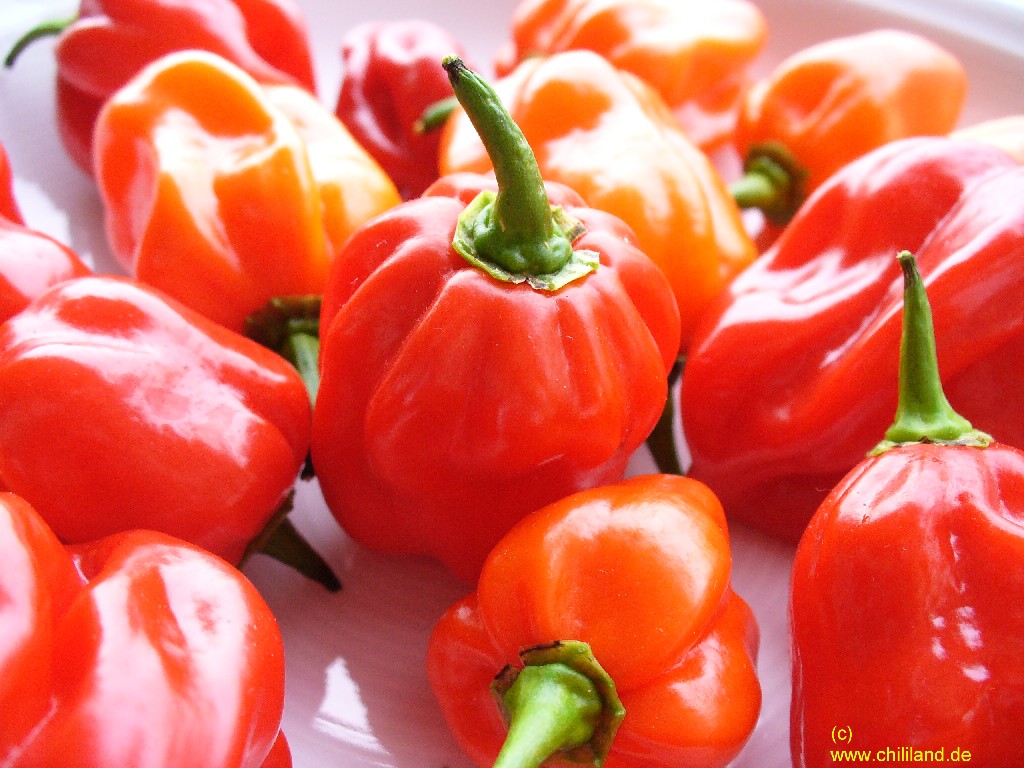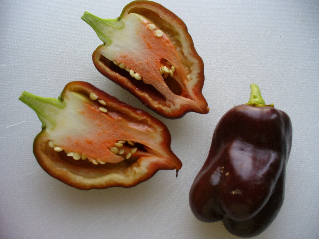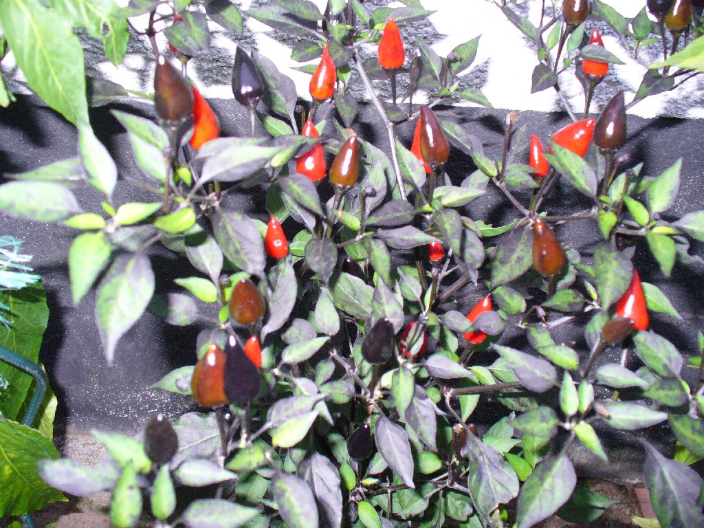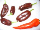 Im Bild "Chili Mix Garten", sind auch ein paar Hungarian Sweet Black im Hintergrund zu erkennen. Dieser Paprika ist zwar ohne Kerne als Gemüsepaprika durchaus mild im Geschmack, mit Kernen sind die angegebenen Schärfegrade 1-3 eher etwas zu tief angesetzt.