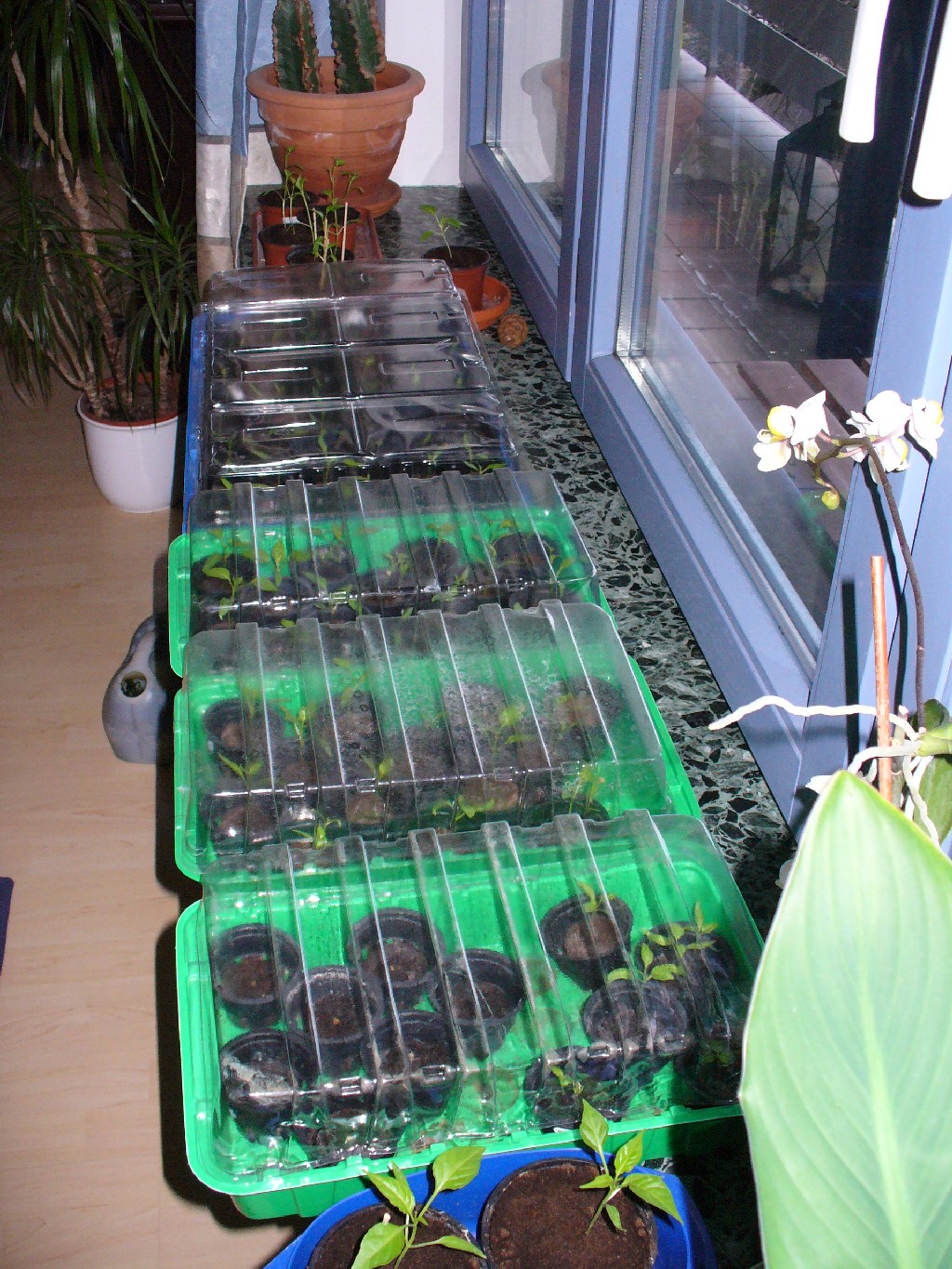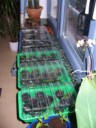 Noch haben wir unsere Pflänzchen komplett auf der Fensterbank im Wohnzimmer untergebracht. Etwas mehr als die Hälfte wurden bereits pikiert, der Rest wird noch diese Woche umgesetzt. Im Mai geht es dann endgültig an die frische Luft in den Garten sowie zum Teil auf unseren Balkon.